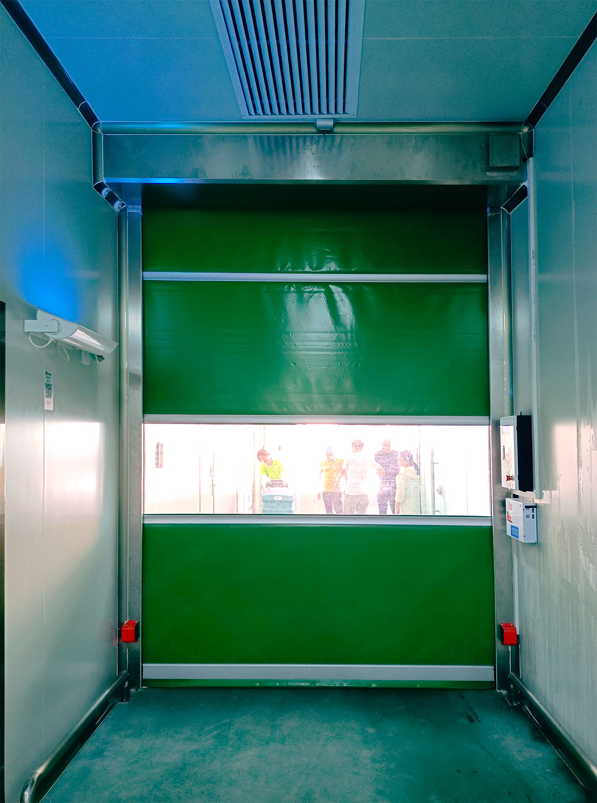 選用法國進(jìn)口高強(qiáng)度工業(yè)織布,厚度為0.9mm,顏色:紅色、黃色、藍(lán)色、綠色、橘黃色、灰色、白色、黃色網(wǎng)格、白色網(wǎng)格等多種顏色可選擇,中間加裝透明視窗(厚1.2mm)使人員車輛出入更安全,具有高抗拉強(qiáng)度, 高抗穿刺性能,適用于頻繁開啟,高速運(yùn)轉(zhuǎn);外置鋁合金肋條,增加抗風(fēng)效果。